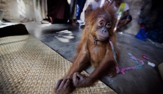 (20) This shows a baby orangutan that has been caught up in the Pet trade